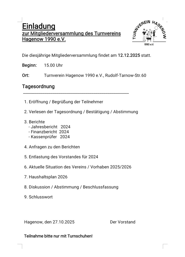 Herzlich willkommen auf der Homepage des Turnvereins Hagenow 1990 e.V. Wir freuen uns sehr, dass ihr hier seid. Schaut euch gerne bei uns um oder besucht uns persönlich. Unser Vereinsleitbild "Gesundheit braucht Bewegung" leben wir.